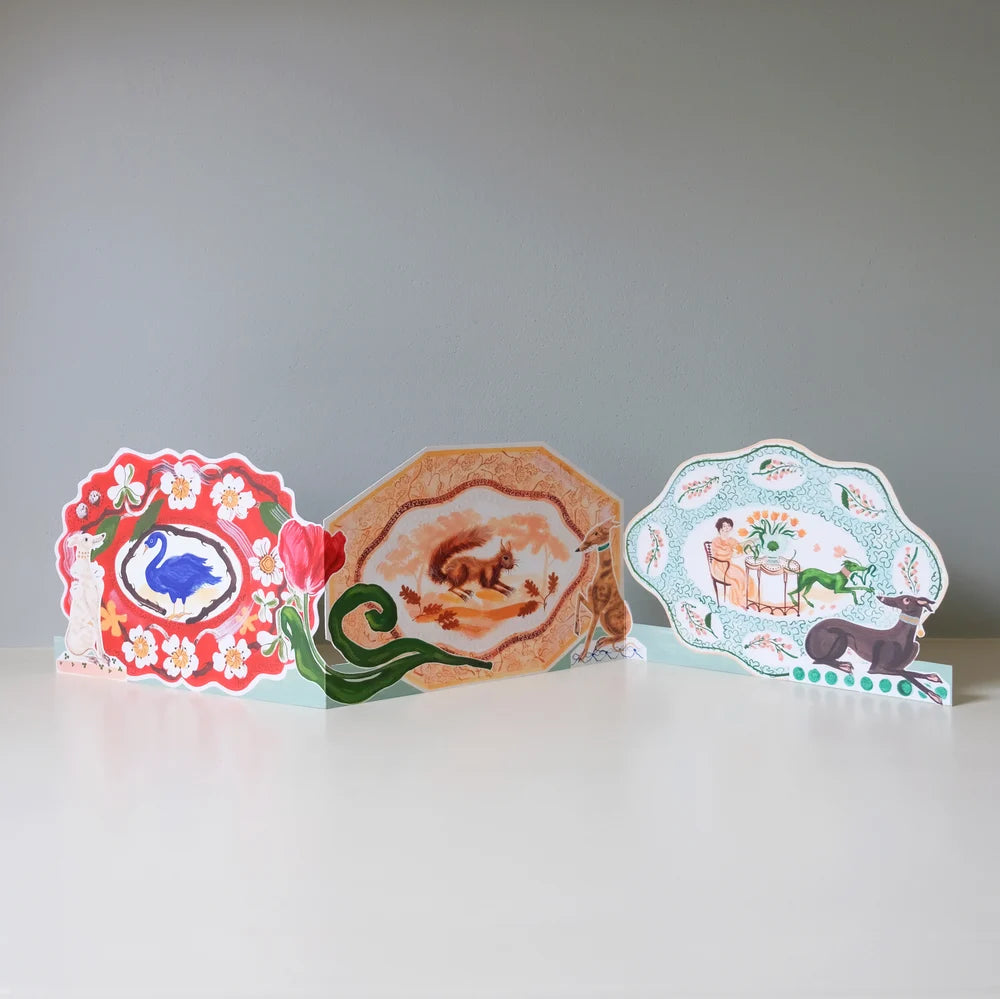 A hand-finished 3D Greeting Card that folds out into a concertina of Romantic platters.