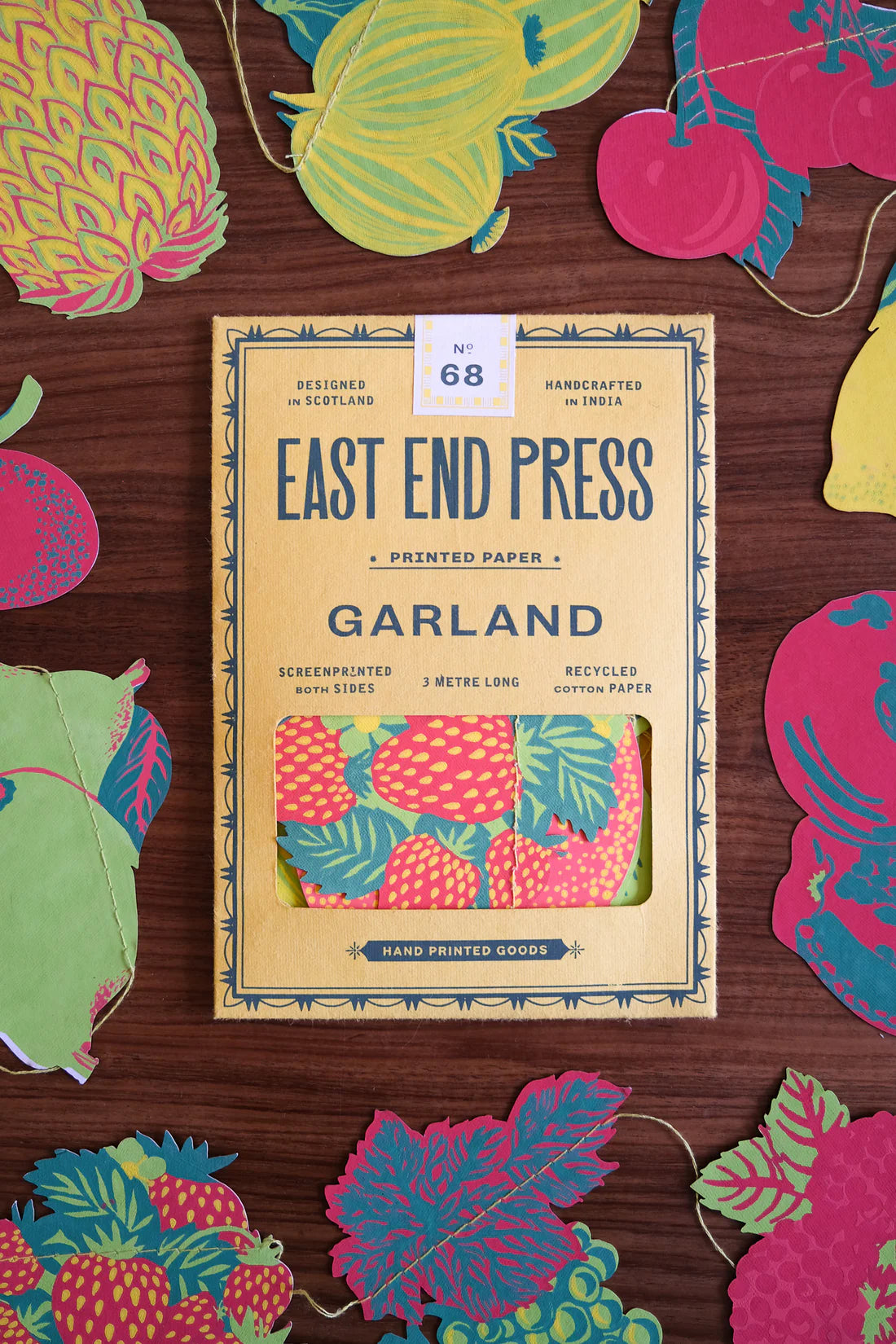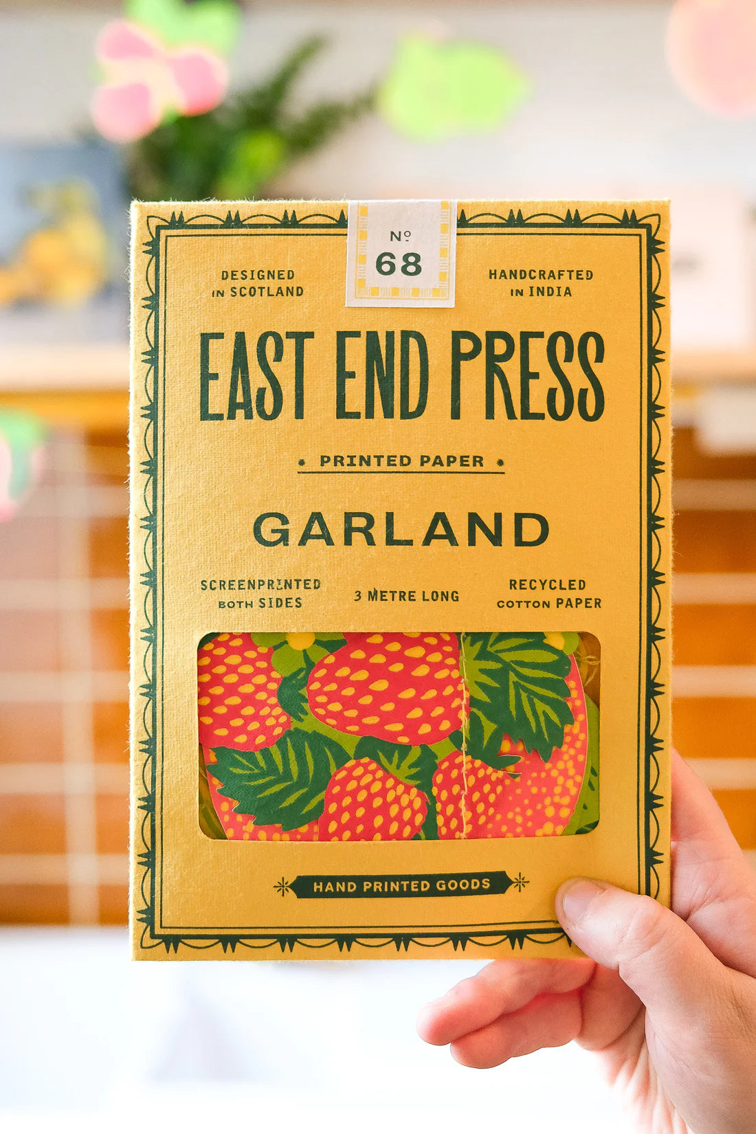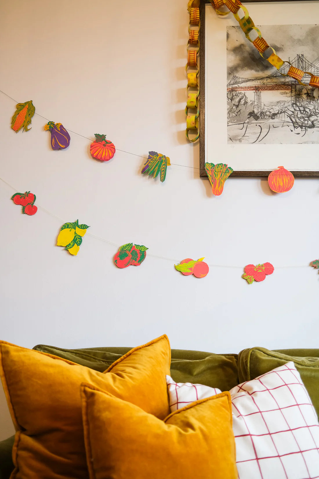 With juicy strawberries, apples, grapes, lemons, raspberries, pineapples, and more, each of the twelve fruit shapes along this three-metre-long garland is deliciously unique.