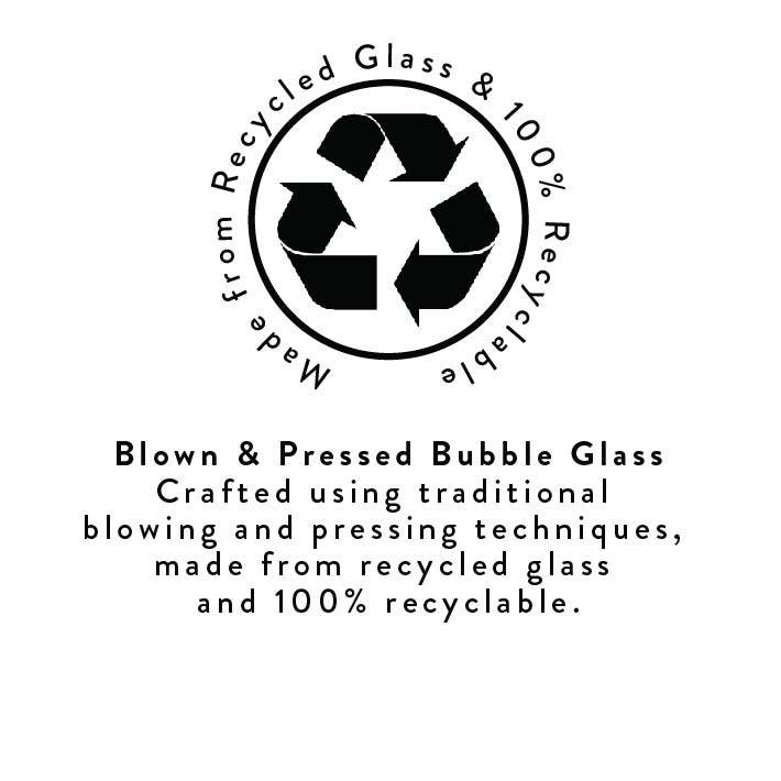 Expertly crafted from recycled bubble glass, this glossy candleholder is the perfect complement to our candles. Each piece is unique, with slight variations in design, making for a classic and timeless addition to your home decor. Whether as a gift or for personal use this candleholder is sure to delight with its simplicity and elegance.