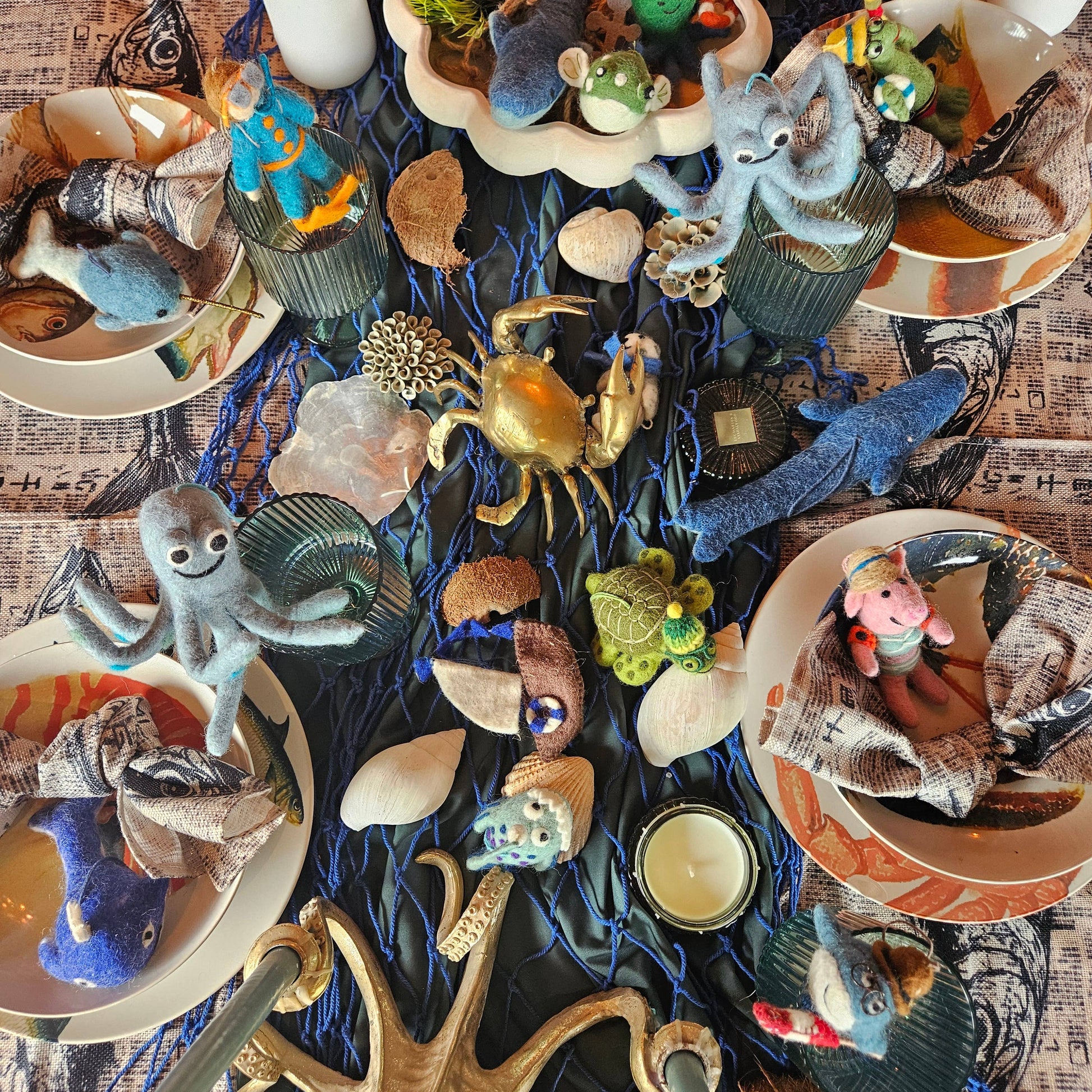 They say the strangest creatures live deep down in the very depths of our ocean, and Finnigan might well be living proof of that… Complete with gorgeous blue detailing, a set of nashers that any beast would envy and of course an extra eyeball hanging from his antenna to help him navigate the big blue sea, Finnigan is here to make waves and splash his way into your heart. This needle felt creation is a testament to the creativity and dedication that goes into crafting charming and humorous characters, our talented team perfectly capturing Finnigan's unique personality and bringing him to life. Finnigan is made from sustainable, plastic-free materials that are safe for oceans.