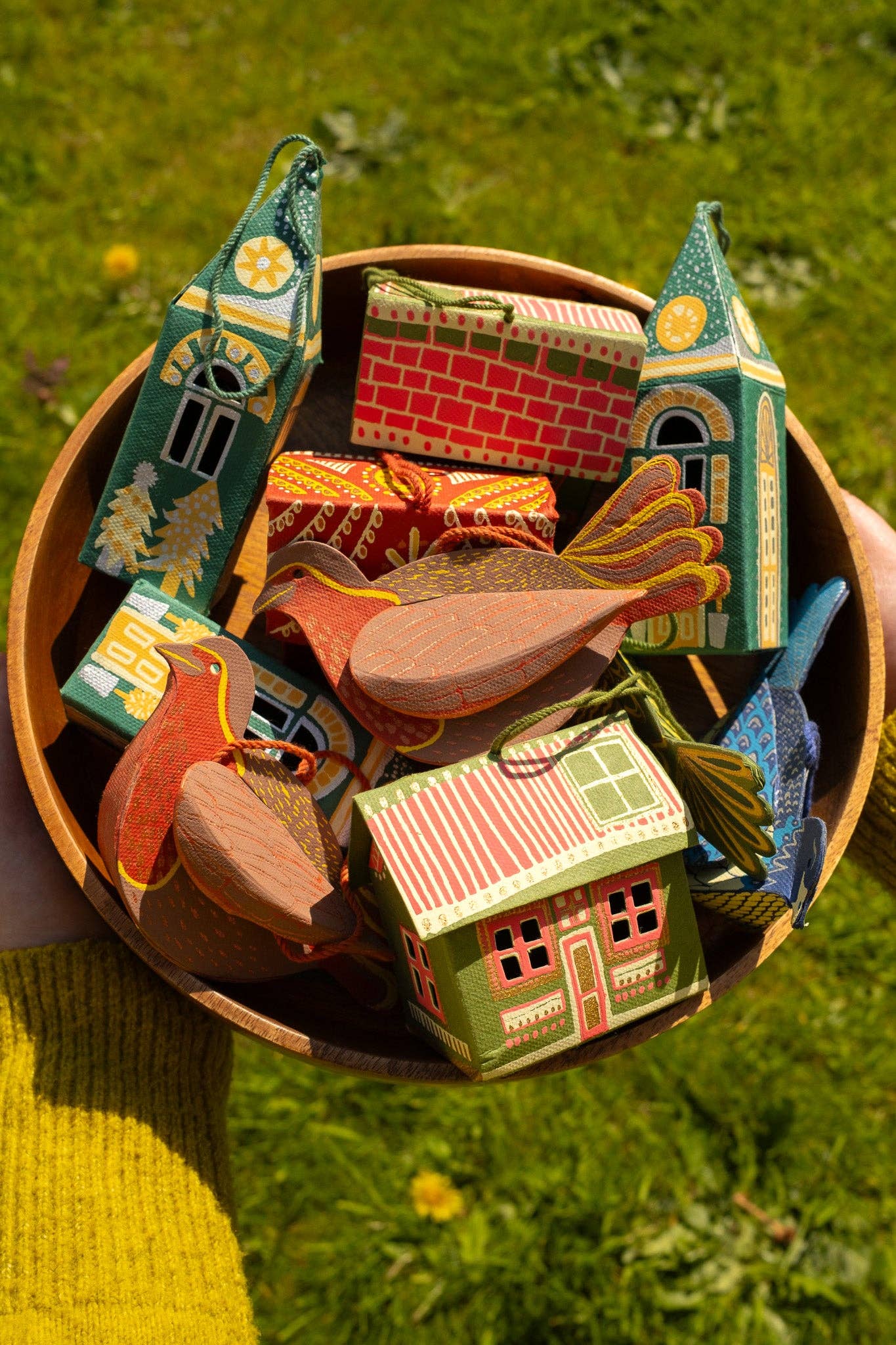 Screen printed board ornament, sustainably made from 100% recycled paper.